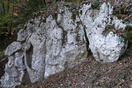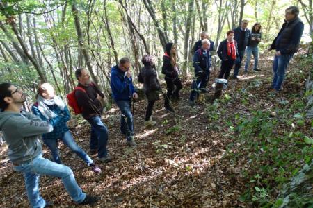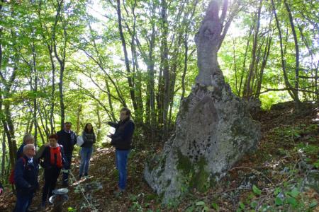 In un bellissimo e soleggiato pomeriggio una quindicina di persone sotto la guida del Dott, Paolo Pozzi geologo, molto bravo nelle spiegazioni, ha percorso il sentiero che collega alcune opere dello scultore che era solito scolpire sulle pietre esistenti in loco.